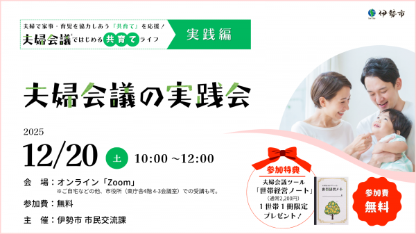 パパ&ママのための「夫婦会議の体験講座」|12/6(土)@オンライン