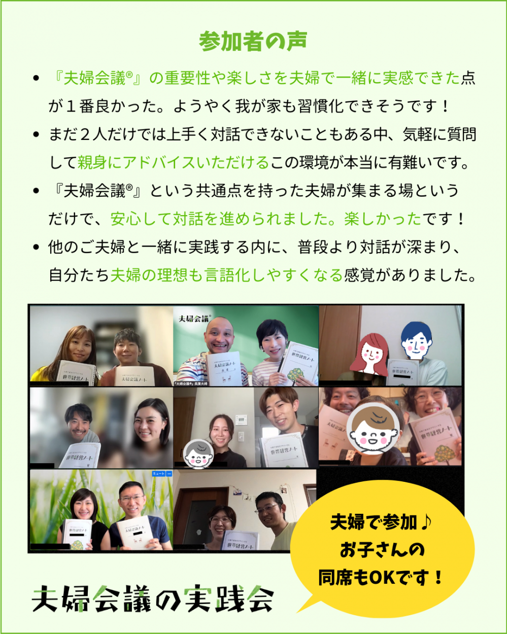画面越しにはなりますが、一緒に『夫婦会議®︎』を楽しみましょう!