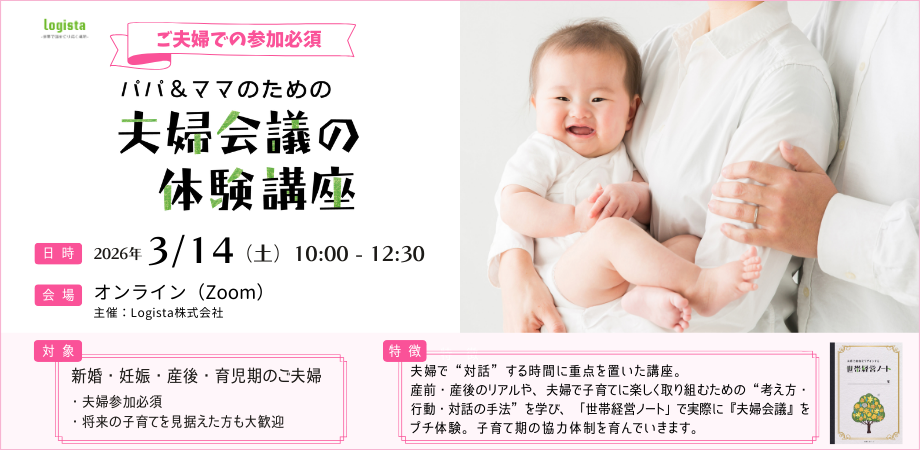 Logista株式会社は、夫婦の対話メソッド『夫婦会議®』の開発・研究を通じ、子どもたちにより良い家庭環境を創り出していける夫婦であふれる社会を目指す、子育て支援企業です。