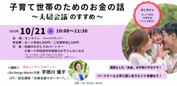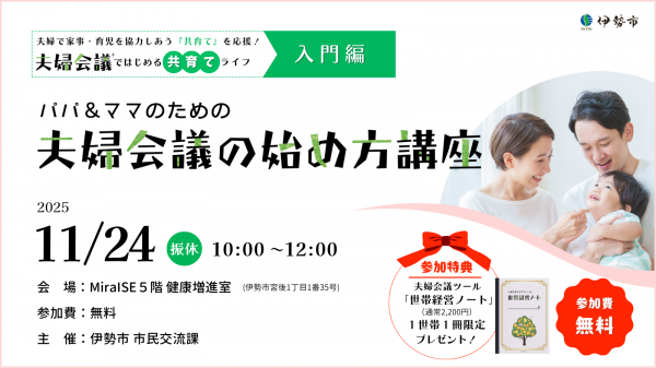 夫婦の対話とパートナーシップを育むきっかけとして、お一人でも参加可能な「夫婦会議の始め方講座」、夫婦参加型の「夫婦会議の体験講座」「夫婦会議の実践会」など、さまざまな場をご用意しています。オンラインで気軽に参加いただける講演イベントや「参加無料」「プレゼント付き」などのイベントも開催中。ぜひ定期的にチェックしてみてくださいね!